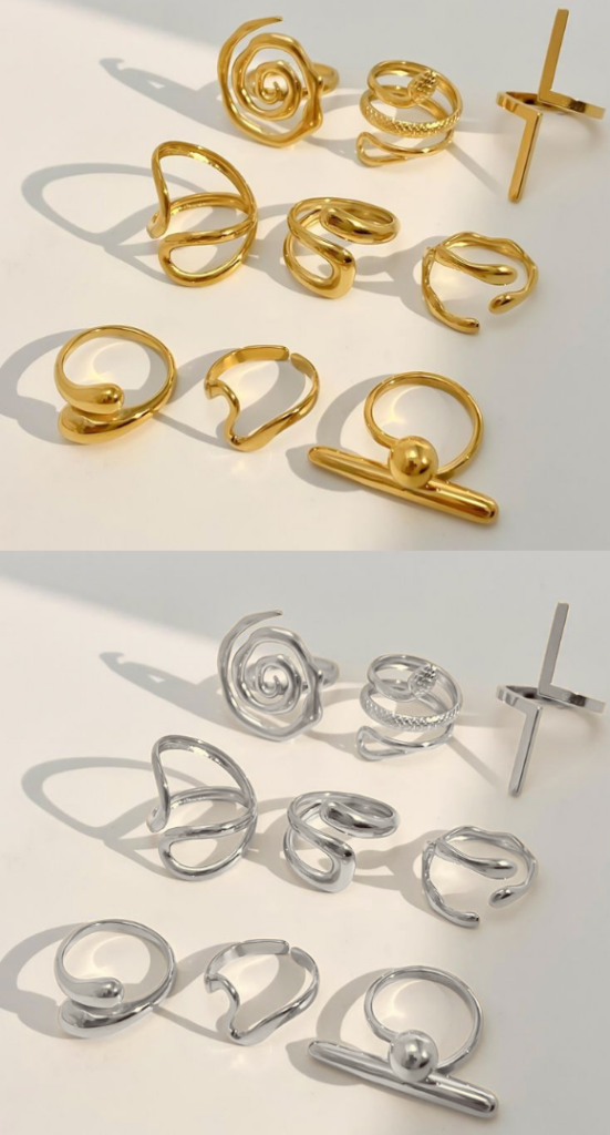 Des bagues en or ou en argent, au design soigné, qui ajoutent instantanément du caractère et une touche brillante à votre style.